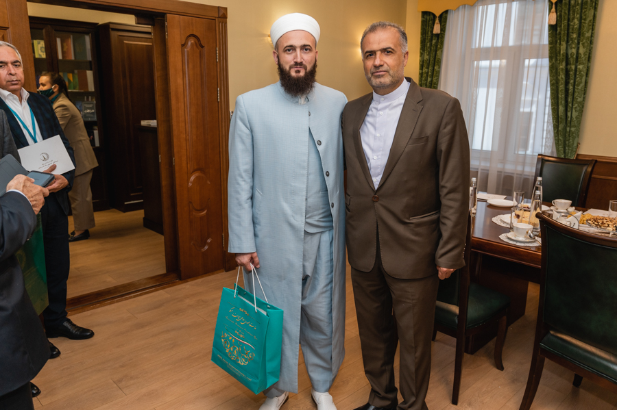 В память о встрече руководители обменялись подарками: муфтий преподнес иранскому послу издание «Калям Шариф. Перевод смыслов» в эксклюзивном формате.