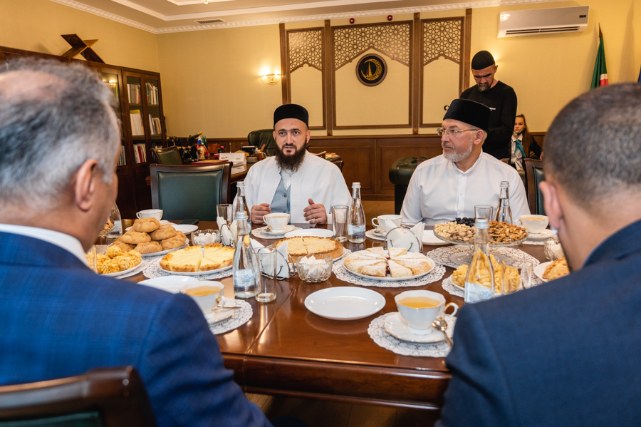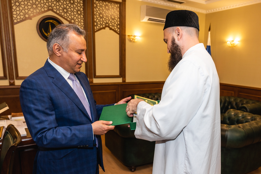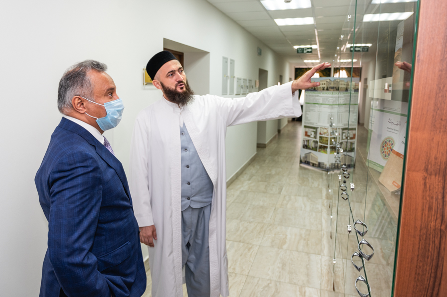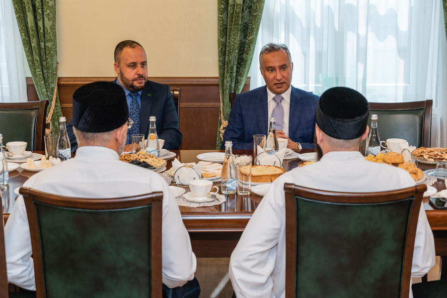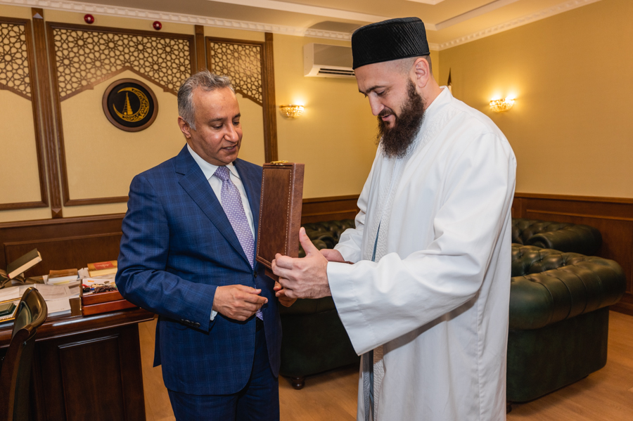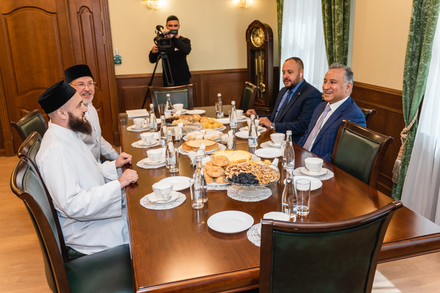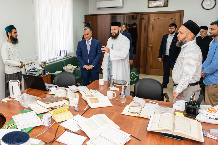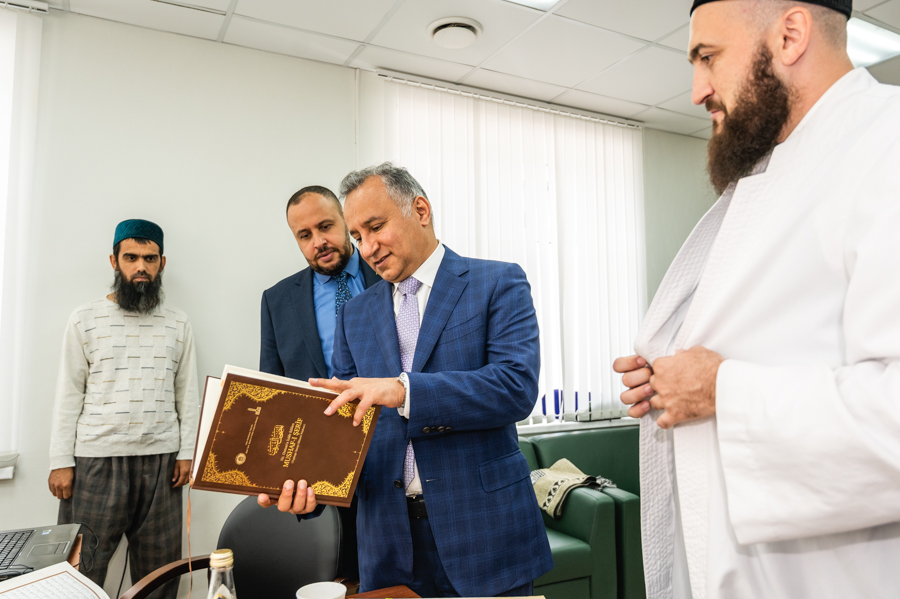 Знакомство с муфтиятом гость начал с общения со специалистами отдела по вопросам шариата ДУМ РТ. Здесь Камиль хазрат показал ему уникальный экземпляр Куръана, выпущенного в Казани в 1899 году, и рукописный Куръан Гусмана радыйаллаху ганху. Также он рассказал послу о работе в ДУМ РТ над подготовкой первого издания Куръана на основе современного компьютерного шрифта «Казан басмасы», который муфтияту удалось воссоздать из аутентичного одноименного типографского отпечатка. Издание планируется выпустить к 1100-летию официального принятия ислама в Волжской Булгарии.