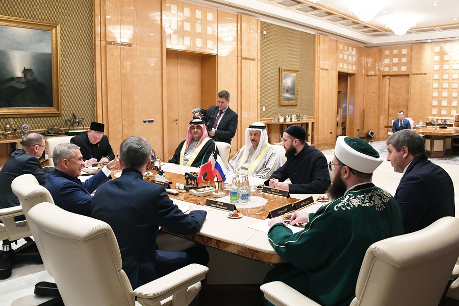 Сегодня в Казани состоялась встреча Раиса Татарстана Рустама Минниханова с Председателем Верховного Совета по исламским делам Королевства Бахрейн Шейхом Абдулрахманом бин Мохаммедом бин Рашедом аль Халифой. Во встрече также принял участие Муфтий Татарстана Камиль Самигуллин.