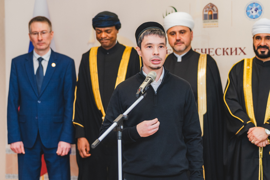 Рушан хазрат Аббясов, выступая на церемонии открытия, передал слова приветствия Председателя ДУМ РФ Равиля хазрата Гайнутдина и поблагодарил Камиля хазрата Самигуллина – за поддержку, а гостей и представителей СМИ – за большой интерес к уникальной выставке. Он пожелал присутствующим приятного просмотра, прочитать и максимально получить важную информацию, которая на стендах.
